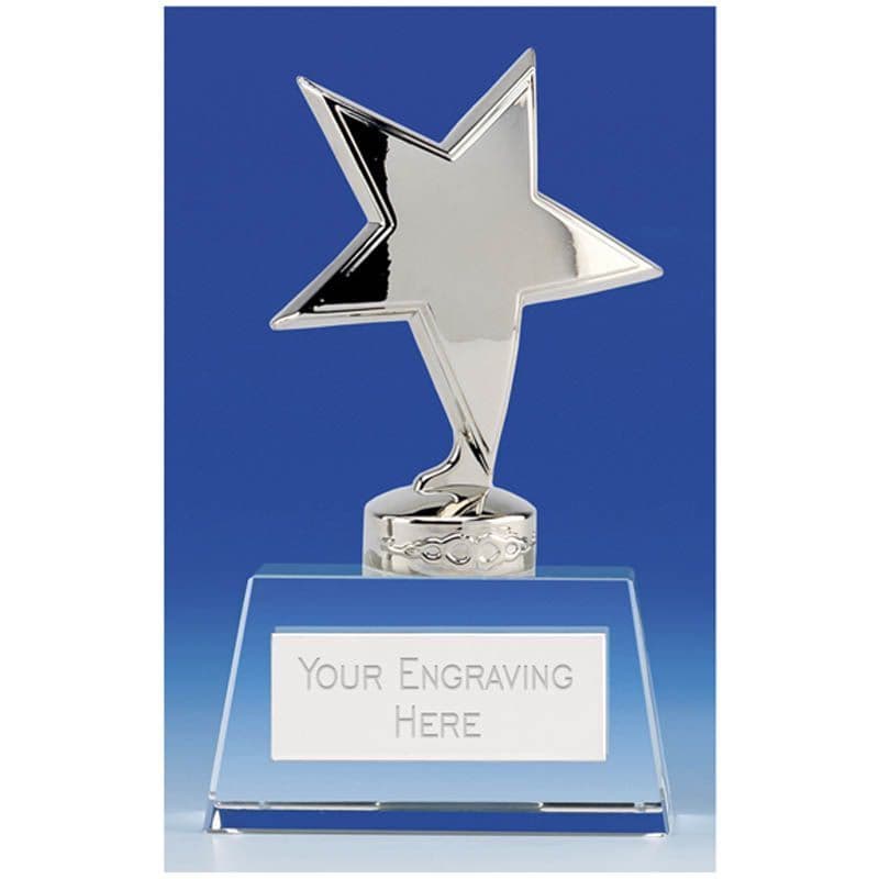 The Stellar Star Crystal Award is a high quality small metal and crystal trophy with silver star topper. Available in 2 sizes, the Stellar Star Trophy comprises of a deep high quality crystal base, with silver metal star on the top. The base of the Stellar Star Crystal Award holds an engraved text plate.